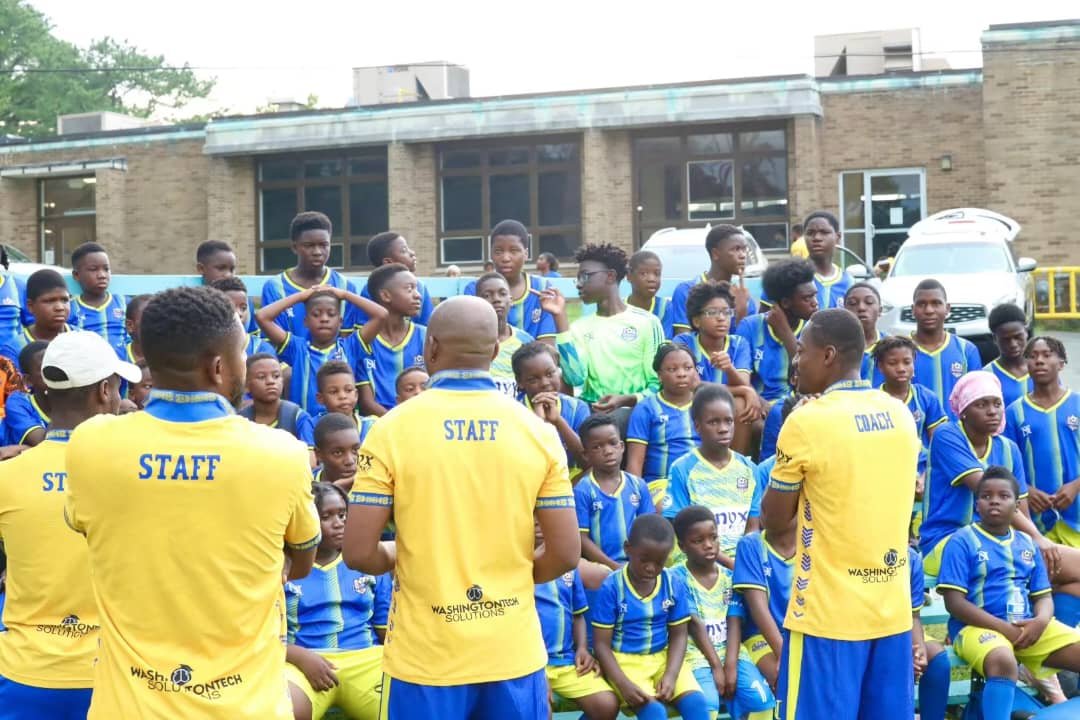 To our pleasant surprise, Eyong Enoh highly praised the custom – made jerseys of our school. He picked up a jersey, carefully examined the fabric, tailoring, and detailed design, and commented, “The quality of this jersey is really outstanding! The fabric is extremely breathable, which is crucial for the kids to stay comfortable during high – intensity training and matches. Moreover, the tailoring fits the body well and won’t hinder their movements on the field. The details are also very well – thought – out, like the design of the collar, which is both aesthetically pleasing and practical.” Hearing such praise from him filled us with pride and further strengthened our determination to provide high – quality equipment for the trainees.